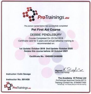 Pad, Foot and Paws are fully licensed for dog boarding by Bury council, are fully insured, DBS checked and are trained in pet first aid.